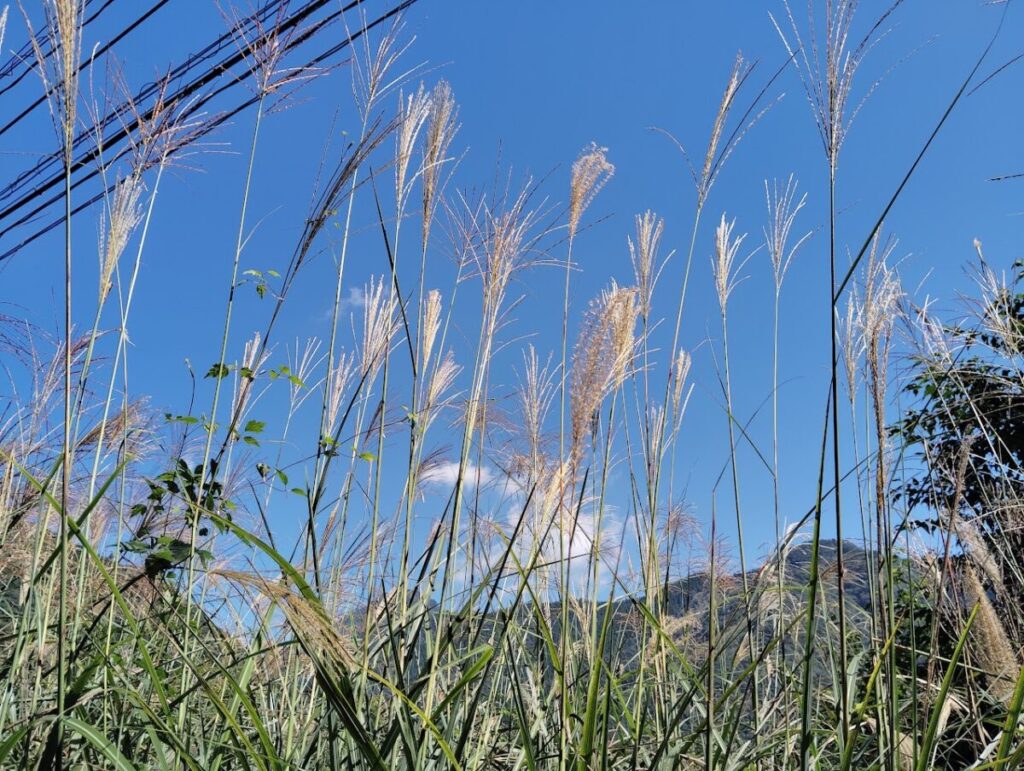 山あいの道を車で走っていると、風に揺れるススキが目に入りました。