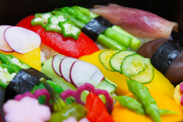 メニューは、クリスマスに使えるデコレーション寿司や鶏肉のロースト風、白菜とリンゴのサラダなど5品。