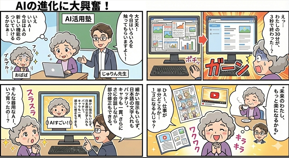 グラフィックレコーディングや4コマ漫画も、簡単な指示でスイスイ作れるようになっていて、思わず「ここまで来たのねぇ」と感嘆のため息がこぼれます。