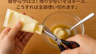 こんにちは。シニアライフにエッセンスを届けたいいちごです。冷蔵庫の中に、残り少なくなったマヨネーズのチューブがありませんか?容器をぎゅーっと絞っても、まだ中に残っているのに出てこない。でも捨てるには、なんだかもったいない…——そんな経験、あ...